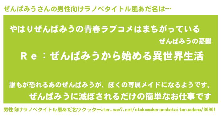 | 胡散臭い通販商品みたいなあだ名 | 『芸能人もオススメする高麗人参…その名も「ぜんばみう」』 |