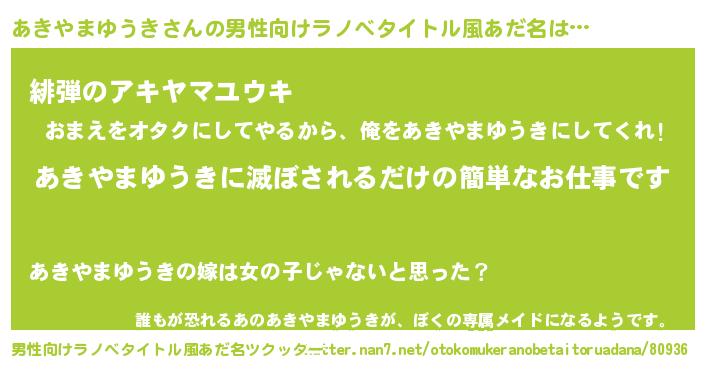 | ヘコむあだ名 | 『あきやまゆうき(苦笑)』『あきっ子』 |