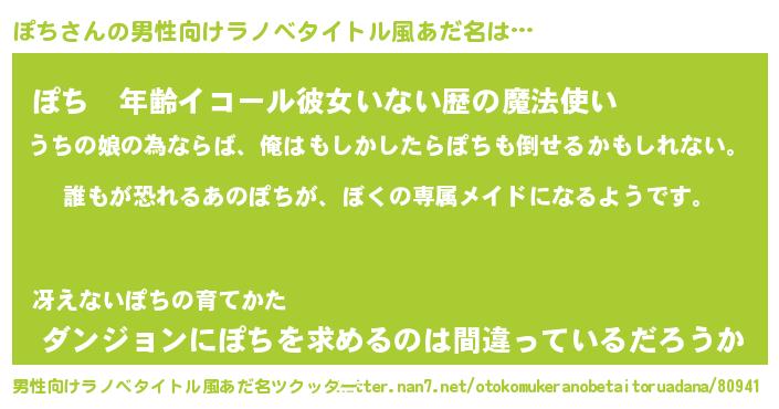 | ヒーロー風カッコイイあだ名 | 『ネオポチ』『炎刃騎士ポチ』 |