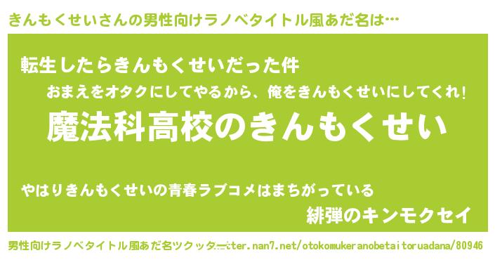 | 女子向けラノベタイトル風あだ名 | 『きんもくせいアンティーク』 |
