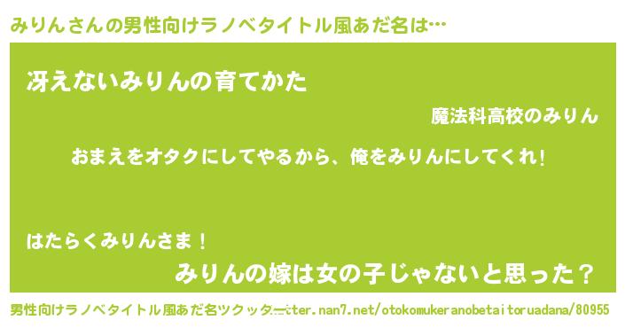 | 女子向けラノベタイトル風あだ名 | 『みりん夫妻のなれそめ』 |