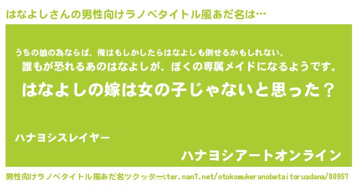 | 女子向けラノベタイトル風あだ名 | 『はなよし様がみてる』 |