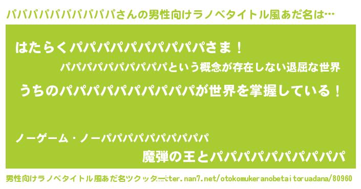 | 意味不明あだ名 | 『住所不定無職パパパパパパパパパパ(4歳)』 |