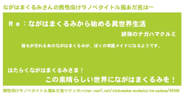 | 女子向けラノベタイトル風あだ名 | 『ながはまくるみの契約王妃』 |