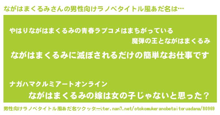 ながはまくるみさんの男性向けラノベタイトル風あだ名をツクッター!
