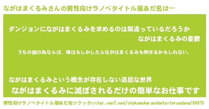 | 女子向けラノベタイトル風あだ名 | 『ながはまくるみ伯爵の花嫁』 |