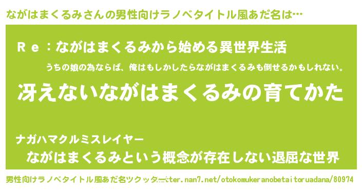 | 伝説のあだ名 | 『古より伝わる勇者ながはまくるみ』 |