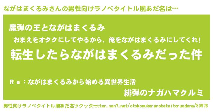 | 女子向けラノベタイトル風あだ名 | 『ながはまくるみの玉の輿計画!』 |