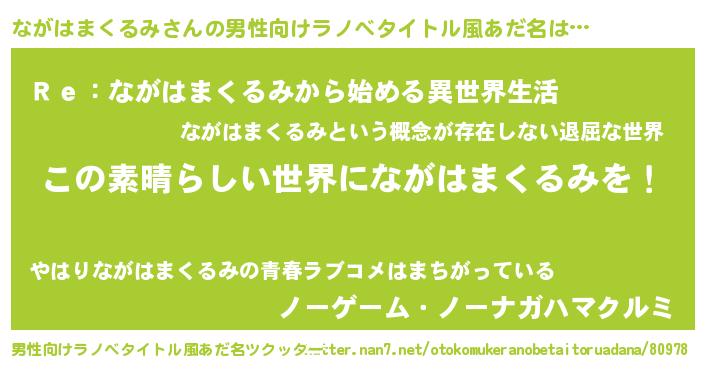 | 胡散臭い通販商品みたいなあだ名 | 『あなたにだけ特別に提供する限定10本のレアな日本酒…その名も「ながはまくるみ」』 |
