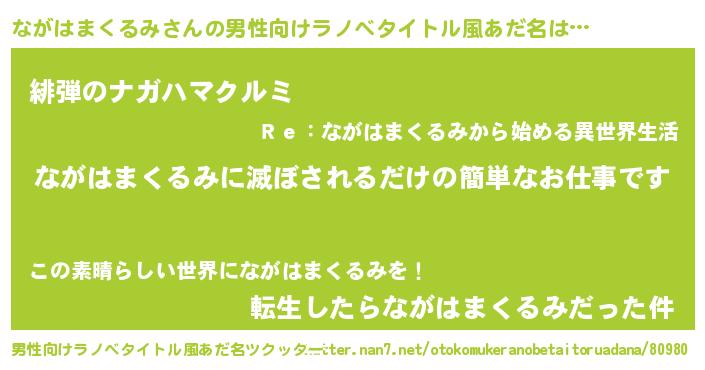 ながはまくるみさんの男性向けラノベタイトル風あだ名をツクッター!