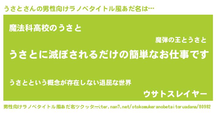 | 意味不明あだ名 | 『自称うさと』『なめこ科うさと属』 |
