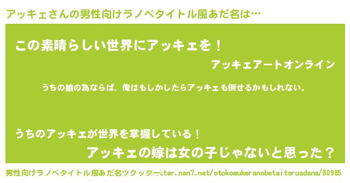 | 胡散臭い通販商品みたいなあだ名 | 『運命の人と巡り会える高級そうな皿…その名も「アッキェ」』 |