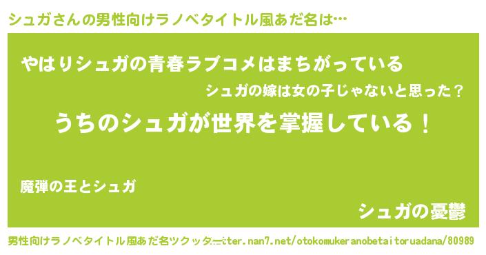 | 胡散臭い通販商品みたいなあだ名 | 『運命の人と巡り会える高級そうな絵画…その名も「シュガ」』 |