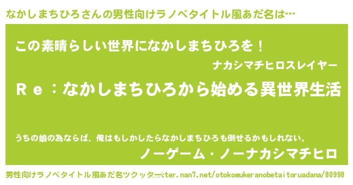 | 意味不明あだ名 | 『自称なかしまちひろ』 |