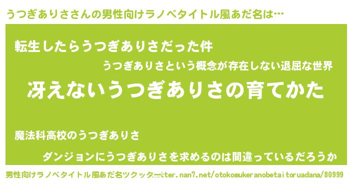 | ヘコむあだ名 | 『うつっぺ』『うつぎありさ(笑)』 |