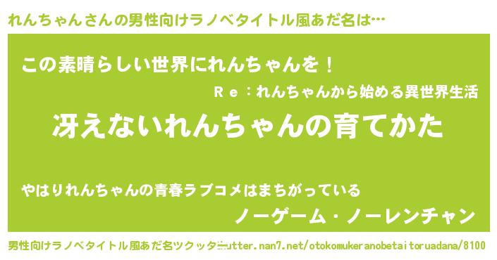 | 意味不明あだ名 | 『住所不定無職れんちゃん(40歳)』 |