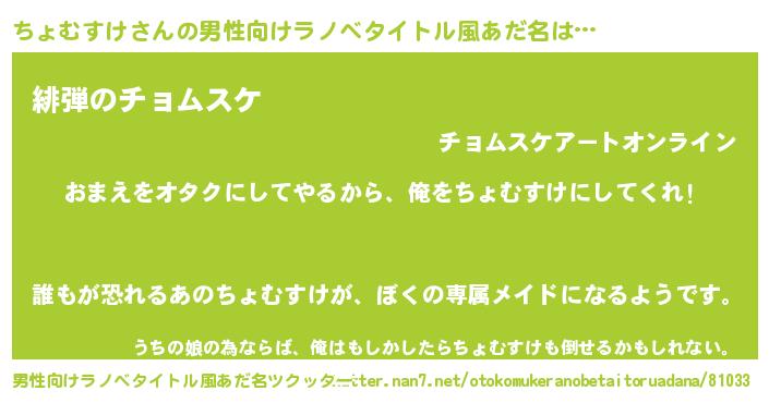 | 意味不明あだ名 | 『眠気覚ましガムちょむすけ味』 |