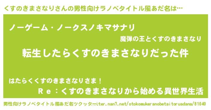 | 女子向けラノベタイトル風あだ名 | 『くすのきまさなりの玉の輿計画!』 |
