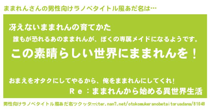 | 女子向けラノベタイトル風あだ名 | 『悪役ままれんに転生したようですが、知った事ではありません』 |