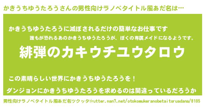 | 女子向けラノベタイトル風あだ名 | 『シンデレラかきうちゆうたろう家の靴箱館』 |