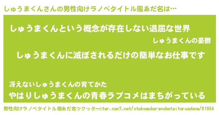 | 胡散臭い通販商品みたいなあだ名 | 『来世でも幸せになれる水素水…その名も「しゅうまくん」』 |
