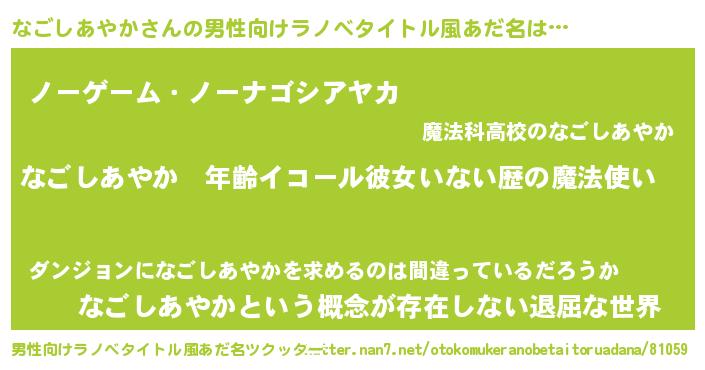 なごしあやかさんの男性向けラノベタイトル風あだ名をツクッター!