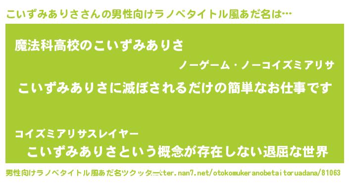| 意味不明あだ名 | 『自称こいずみありさ』 |