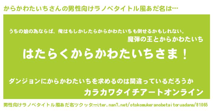 | ファンタジー風あだ名 | 『エターナルカラカワタイチー』 |