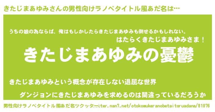 | 伝説のあだ名 | 『不死鳥の竜騎士きたじまあゆみ』 |