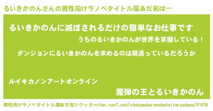 | 胡散臭い通販商品みたいなあだ名 | 『信頼と実績のサプリメント…その名も「るいきかのん」』 |