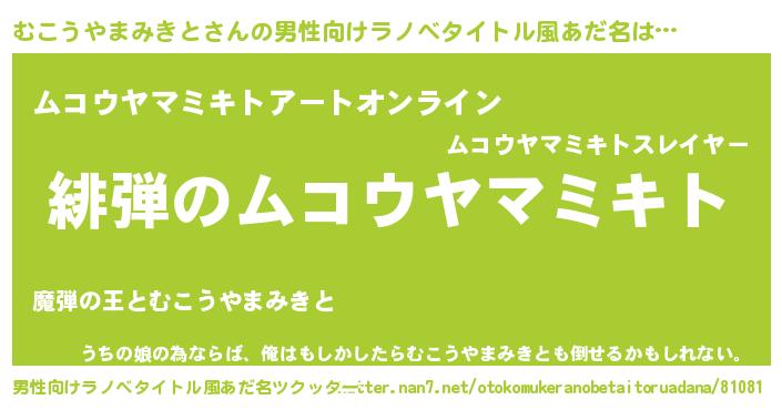 | 女子向けラノベタイトル風あだ名 | 『シンデレラむこうやまみきと家の靴箱館』 |