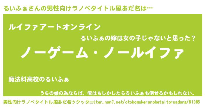 ヒーロー風カッコイイあだ名 | 『慈愛の使者るいふぁ』『天弓騎士ルイ』 |