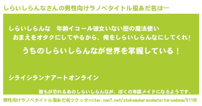 | 女子向けラノベタイトル風あだ名 | 『男装しらいしらんなの憂鬱な任務』 |