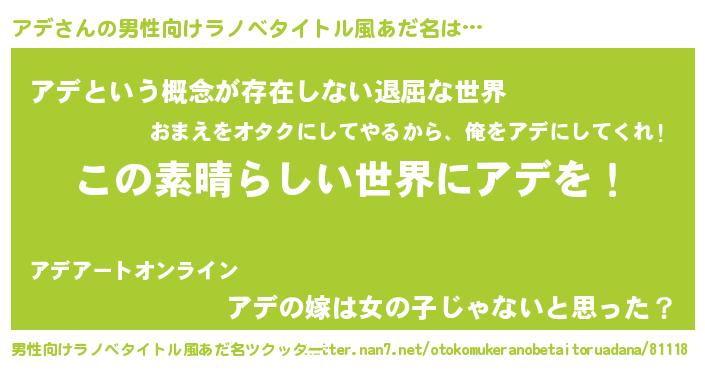 アデさんの男性向けラノベタイトル風あだ名をツクッター!