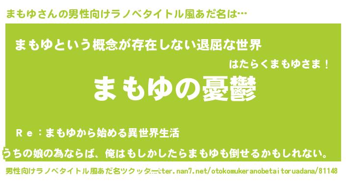 | 胡散臭い通販商品みたいなあだ名 | 『必ず成功するブレスレット…その名も「まもゆ」』 |