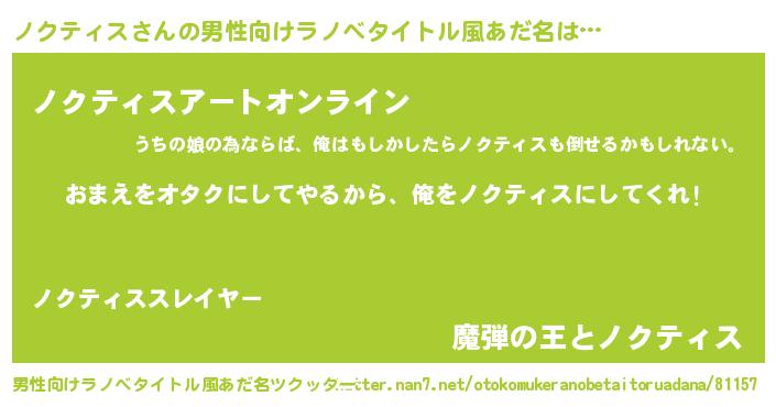 | ヒーロー風カッコイイあだ名 | 『愛の使者ノクティス』『仮面ノクダー』 |