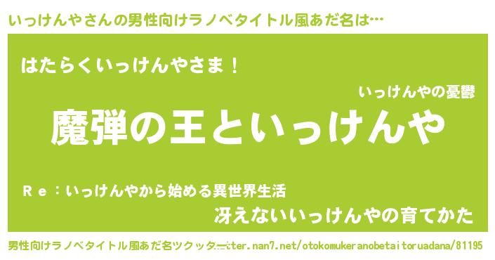 | 意味不明あだ名 | 『住所不定無職いっけんや(68歳)』 |