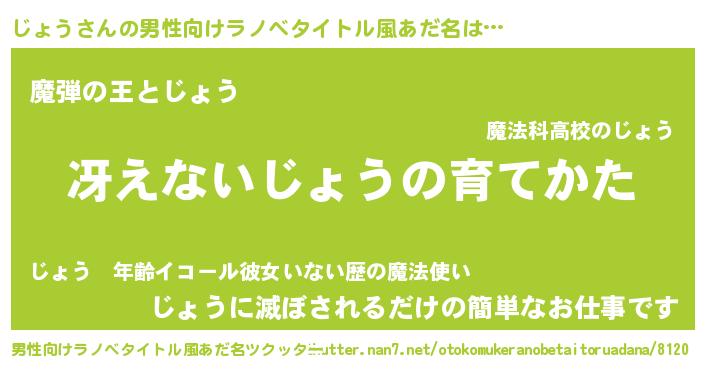 | ヒーロー風カッコイイあだ名 | 『仮面ジョダー』『超時空戦士ジョウ』 |