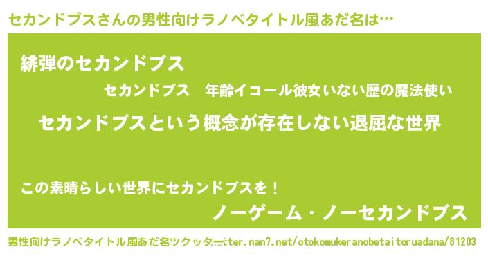 | ヒーロー風カッコイイあだ名 | 『ネオセカンドブス』『仮面セカダー』 |