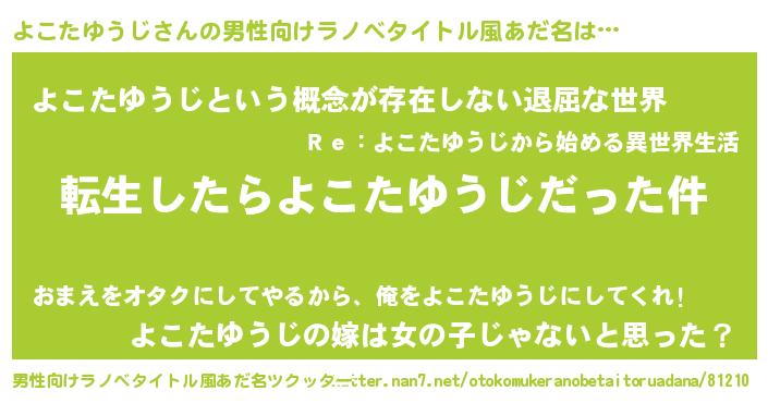 | 胡散臭い通販商品みたいなあだ名 | 『来世でも幸せになれる健康食品…その名も「よこたゆうじ」』 |