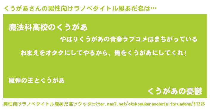 | 女子向けラノベタイトル風あだ名 | 『くうがあ恋絵巻』『くうがあ伯爵の花嫁』 |
