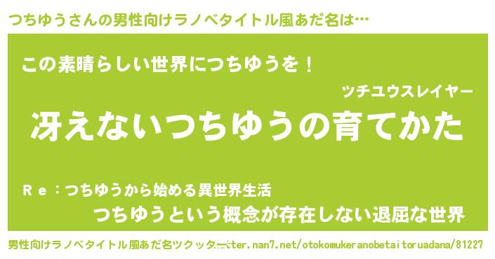 | 意味不明あだ名 | 『住所不定無職つちゆう(89歳)』 |