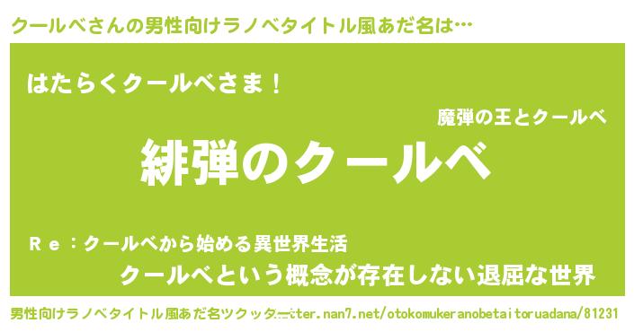 | ヘコむあだ名 | 『クールべ(爆)』『クーにゅー』 |