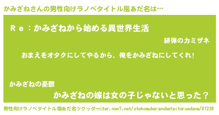 | 女子向けラノベタイトル風あだ名 | 『かみざね夫妻のなれそめ』 |