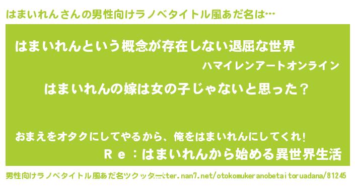 | 胡散臭い通販商品みたいなあだ名 | 『伝統あるペンダント…その名も「はまいれん」』 |
