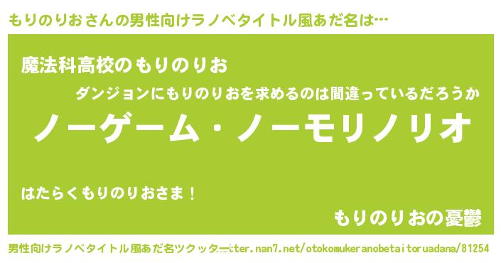 | ヒーロー風カッコイイあだ名 | 『慈愛の使者もりのりお』『黄金騎士モリ』 |