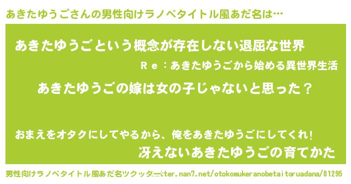 | ヘコむあだ名 | 『あきっ子』『あきたゆうご(爆)』 |