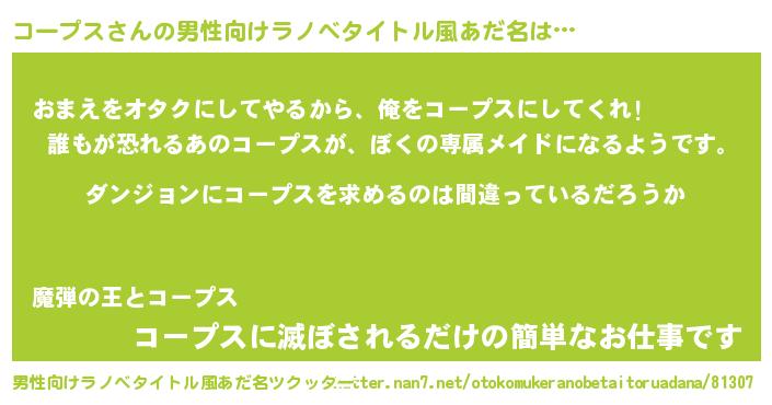 | 胡散臭い通販商品みたいなあだ名 | 『信頼と実績のネックレス…その名も「コープス」』 |