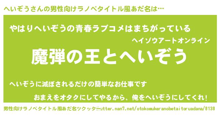| 意味不明あだ名 | 『住所不定無職へいぞう(59歳)』 |