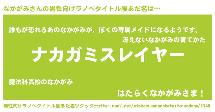 | ヘコむあだ名 | 『なかがみ(笑)』『レバニラ』 |